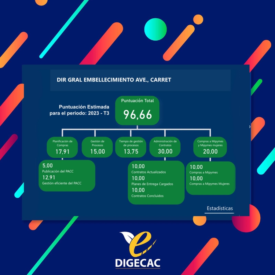 Nuestra institución ha logrado más del 90.45% de resultado en los trimestres anteriores y el actual no es la excepción, durante este tercer trimestre nuestra institución ha logrado un 96.66%, un excelente resultado en el Indicador de Uso del Sistema Nacional de Contrataciones Públicas (SISCOMPRAS). Este es el sistema que ha sido desarrollado para iniciar la medición del cumplimiento de la Ley 340-06 y sus modificaciones, a través de los registros en el portal transaccional. Este sistema no contempla la medición de las especificaciones técnicas, criterios de evaluación, criterios de adjudicación de los procesos publicados.