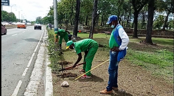 En busca de contribuir con el embellecimiento y forestación de la zona, además de la siembra de árboles se aprovechó la ocasión para la limpieza y mantenimiento del tramo vial que conforman la Autopista de las Américas, Avenida San Vicente de Paul, la 25 de febrero y Autopista de San Isidro.