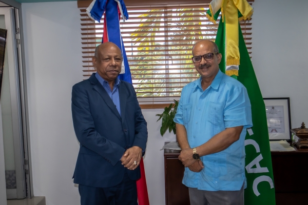 Santo Domingo. – El Director General de Embellecimiento de Carreteras y Avenidas de Circunvalación (DIGECAC), Marcos de León Pimentel recibió la tarde de este lunes la visita de cortesía del Director General del Instituto Agrario Dominicano (IAD), Guillermo García, con quien intercambio temas inherentes respecto al trabajo que realizan ambas entidades.