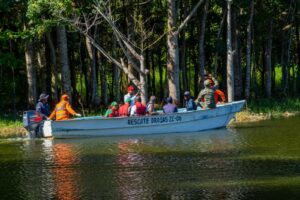 La jornada incluyó limpieza y recogida de desechos, tanto en la parte frontal de la laguna, como en su parte interna, donde se utilizaron equipos, entre ellos botes acuáticos, para extraer los desechos acumulados en el interior de las aguas.