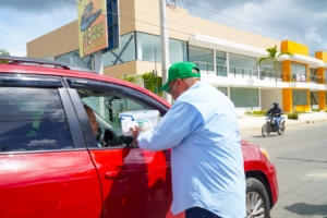 Cientos de conductores, viajeros y transeúntes que cruzaron por el Puente Juan Carlos, el kilómetro 9 de la Autopista Duarte y la Carretera Mella, específicamente en el denominado Cruce de Guerra recibieron el kit conteniendo.