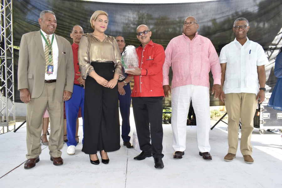 Durante la ceremonia estuvieron presentes la Lic. Helen Medina, Subdirectora Financiera, el Lic. Jesús Colón, Subdirector Administrativo, el Lic. David Marte Barrera, Subdirector, el Lic. Luis Rafael Leroux Veras, Subdirector, el Lic. Ramon Emilio Jiménez, Encargado del Departamento de Comunicaciones y el Lic. Luis De Los Santos, Encargado de Recursos Humanos.
