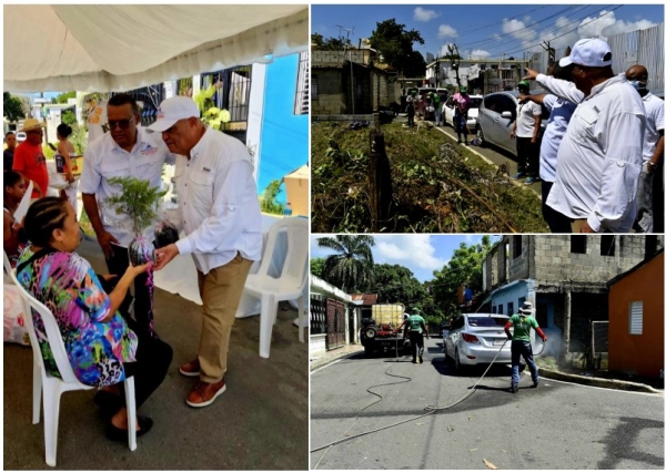 Como parte de las acciones, brigadas de la institución podaron árboles, eliminaron malezas, acondicionaron aceras y contenes, distribución de camiones de agua, jornadas de fumigación y se entregaron cientos de plantas ornamentales.