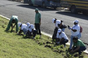 Durante la jornada, ambas instituciones sembraron más de 700 plantas ornamentales en el tramo correspondiente al sector Los Prados de San Luis, específicamente en la franja Este de la carretera Mella, entre el Instituto Técnico Superior Comunitario (ITSC) y la avenida Freddy Beras Goico.